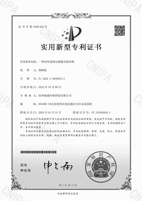 • 風琴式過濾器專利
